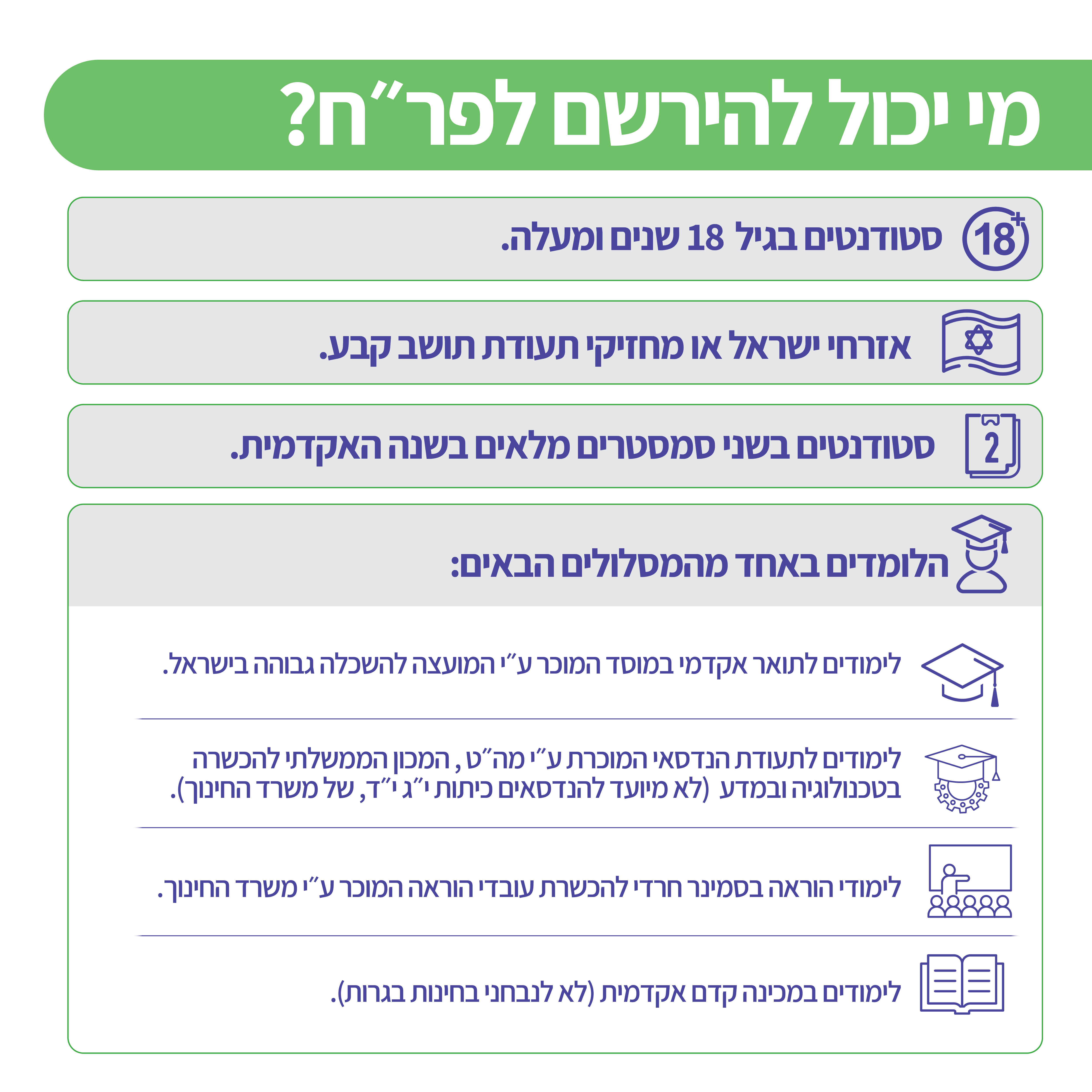 לבדיקת מוסדות הלימוד מהם ניתן להירשם לפר"ח לחצו כאן