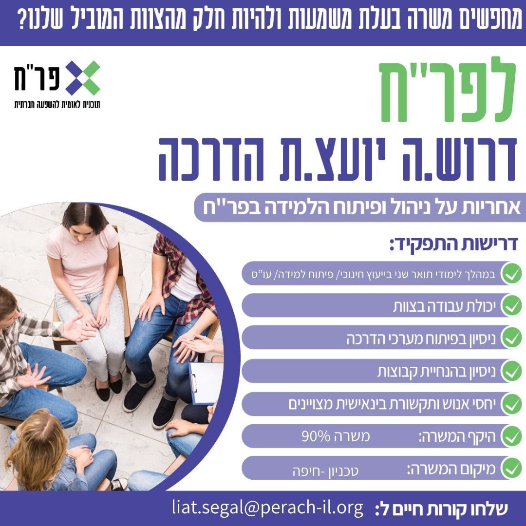 לפר"ח הטכניון- בטכניון דרוש/ה יועצ.ת תחום הדרכה 90% משרה